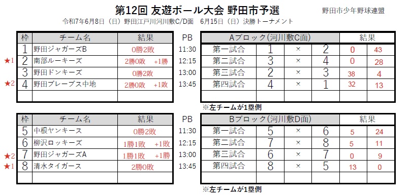 2025年度(2025年6月) 友遊ボール野田市予選(3年生以下チーム)【準優勝】