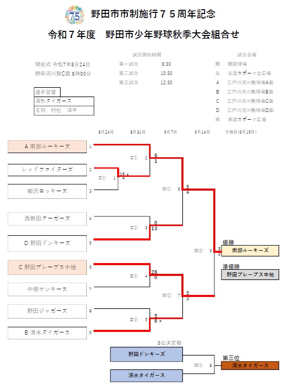 2025年度(2025年9月) 野田市秋季大会(代表チーム)【3位】